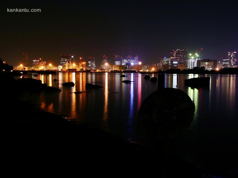 水中倒映的城市夜景