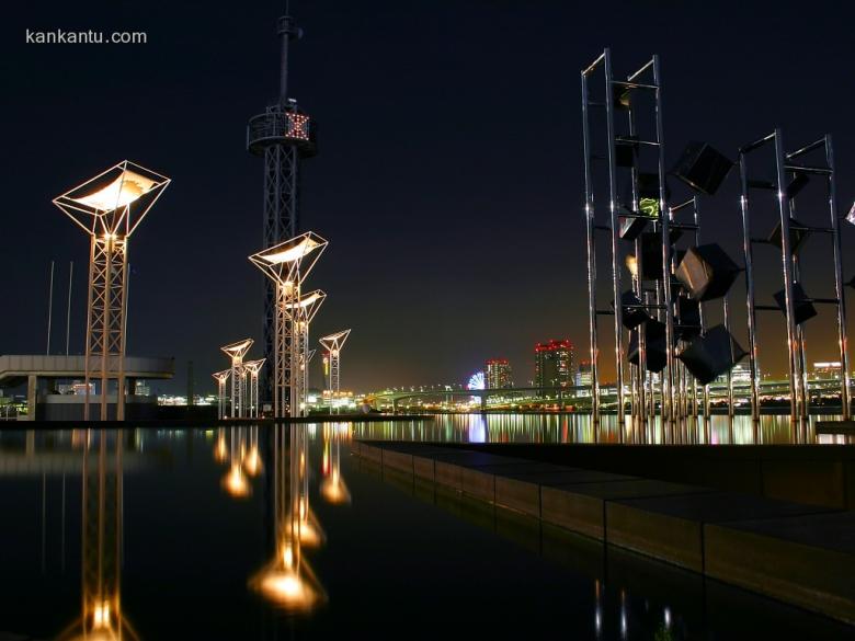 水中倒映的城市夜景