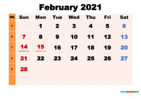 2021年2月日历